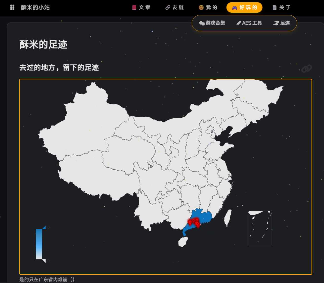 添加足迹页面,现在可以查看酥米去过的地方啦!精简导航栏”好玩的“选项,小游戏统一集合进”游戏合集“页面
