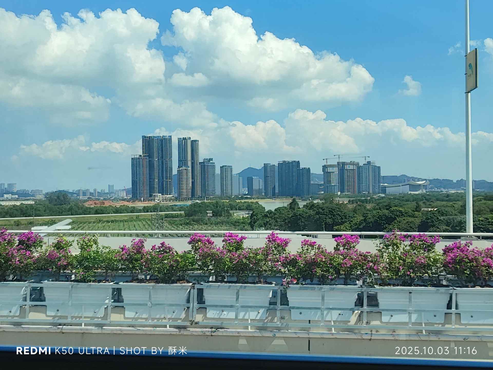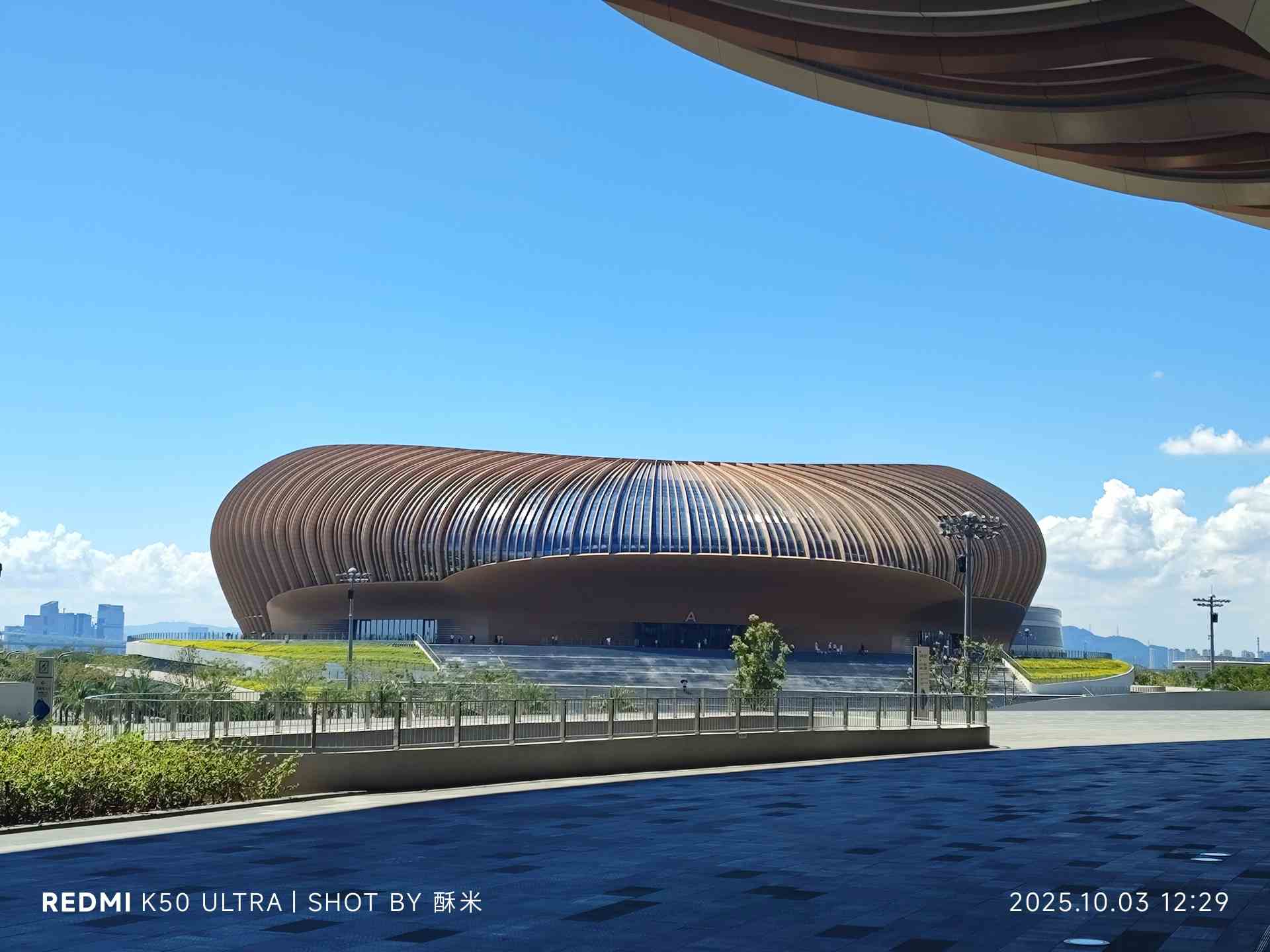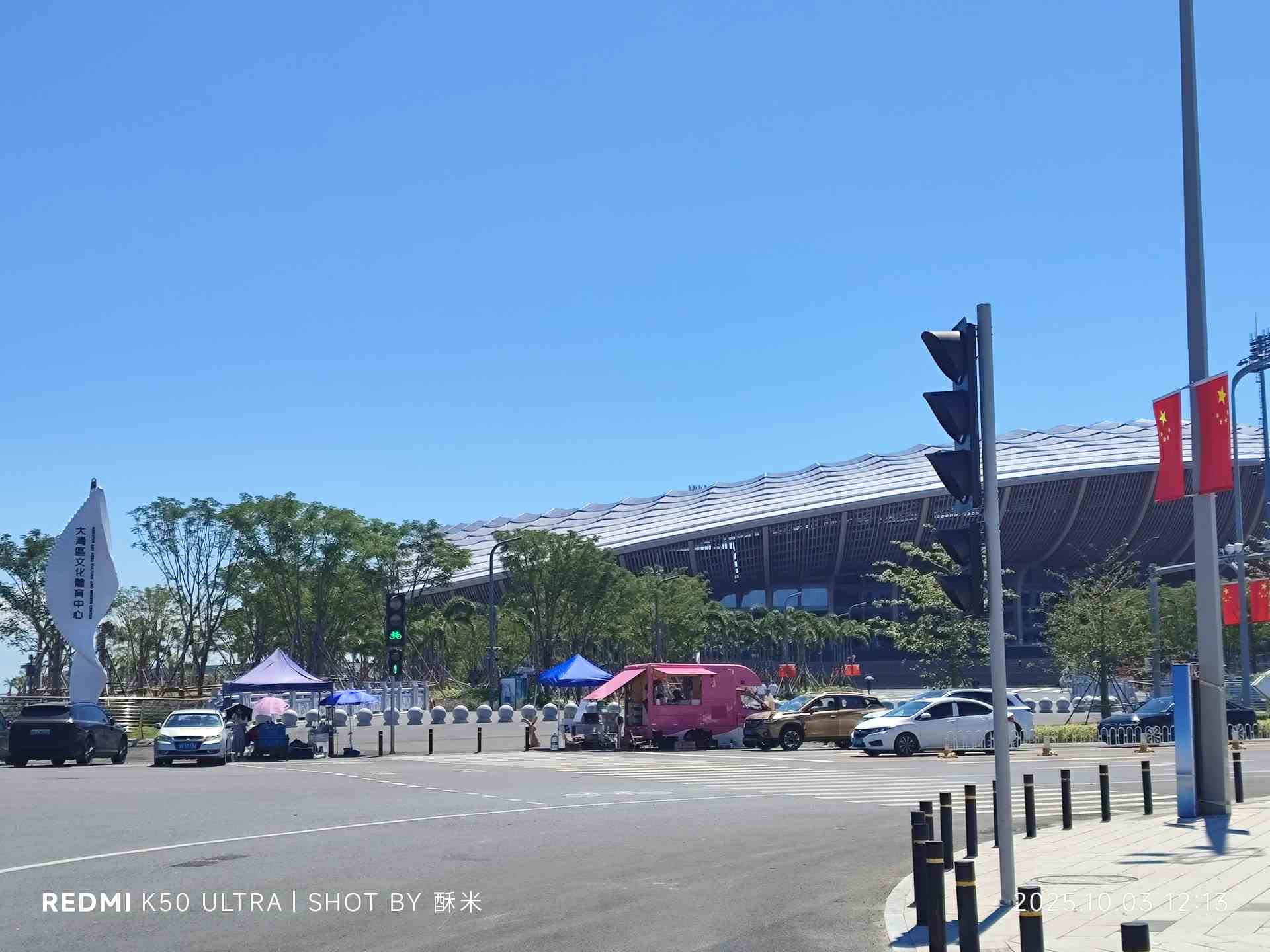 从新垦出发后,约莫五十分钟车程,我们便到了大湾区体育中心站。刚推开车门,一股滚烫的热气就直扑过来——秋老虎的威力仍在,晒得路面都泛着微光,却丝毫不减抵达目的地的期待。