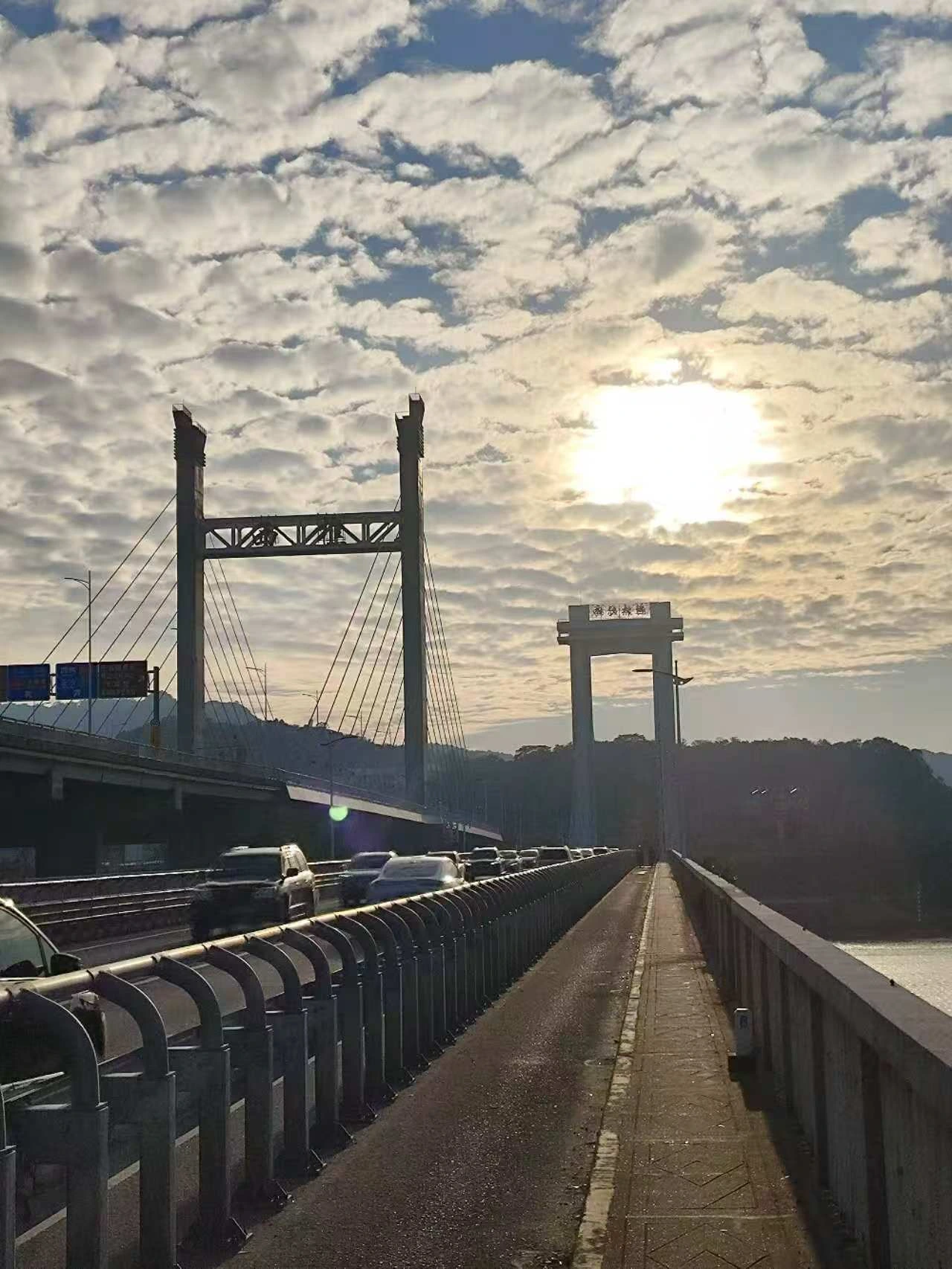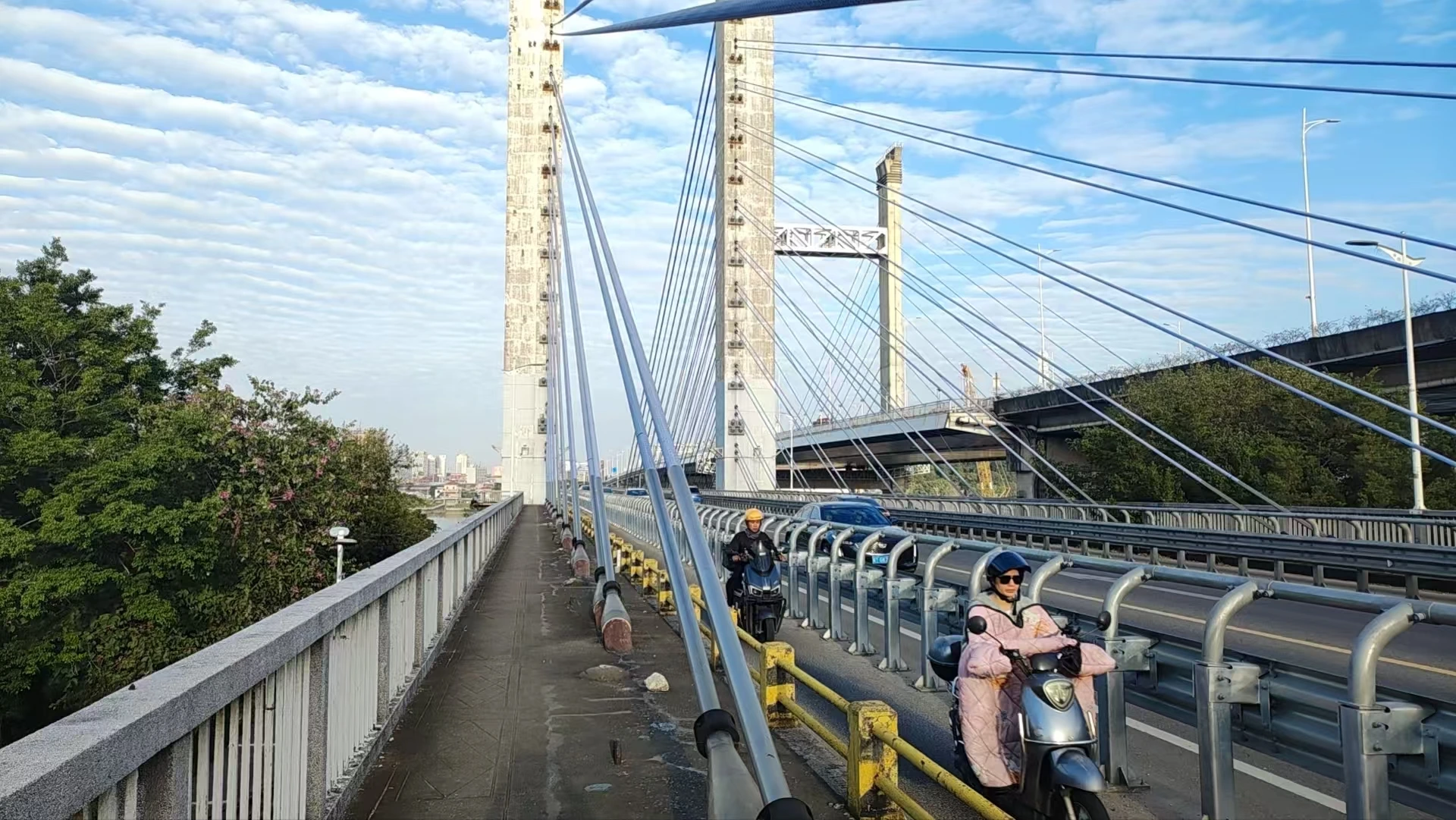是的,徒步走过了西樵大桥(旧桥人行道年久失修,接缝处下面能看到河面,看得我恐高症犯了🤔,生怕手机摔下去了),桥上风贼大,俺拍了些照,然后就急匆匆跑下桥回禅城了😂。回去在南庄客运站扫了台共享电动,骑着发现不对劲