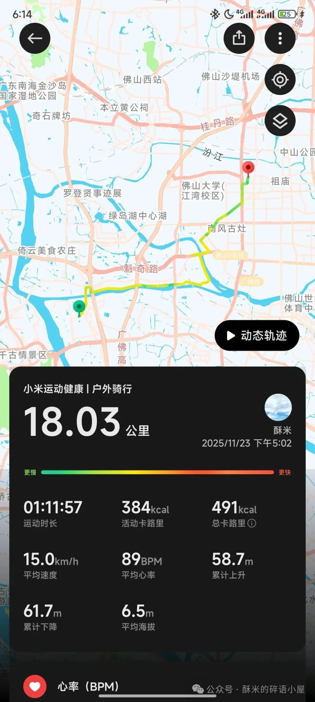 缺点就是南海镇巴真的摇的很慢,能上40都算快了,绕过沙头片区也才15km,用了将近1个小时🌚,好不容易回到西樵。