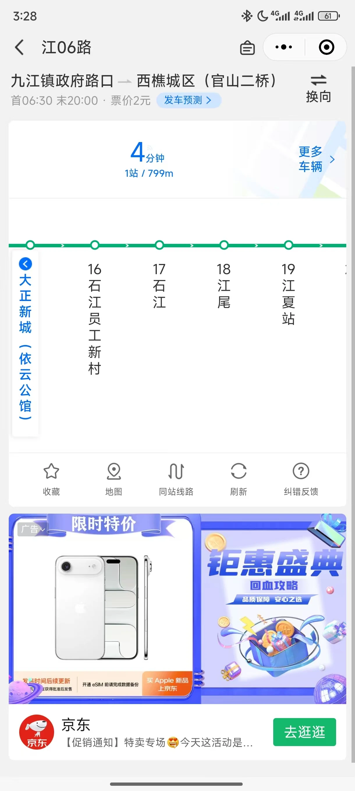由于过九江时搭佛236路公交车发现佛山大道南全程堵车,于是直接从搭江06路公交车回西樵,从西樵回到禅城(反正都差不多4块钱)