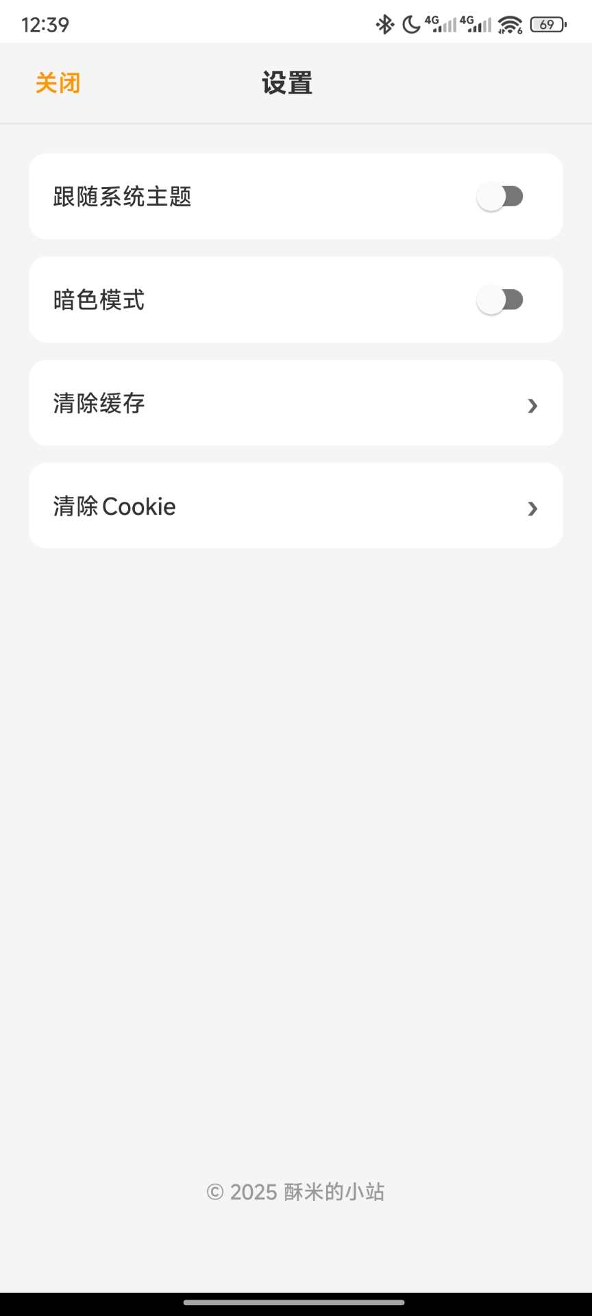 上次不是说做了小程序但是备案过不了吗,所以我重新做了个博客app(web套壳版),目前bug很多,底栏图标不显示,无法储存本地数据等。目前更新功能,清除cookie缓存,亮色暗色切换已经可以正常使用